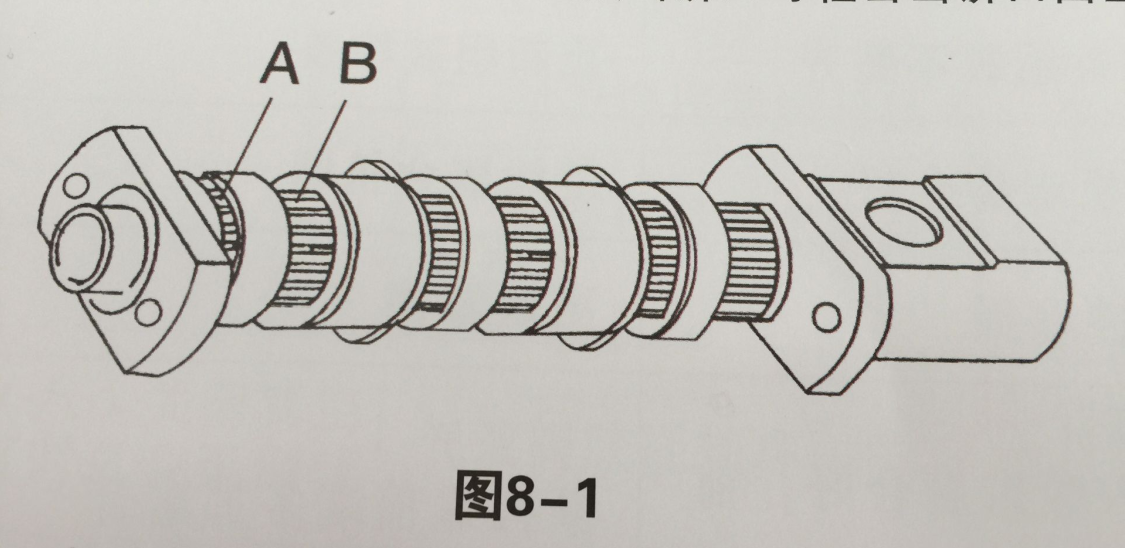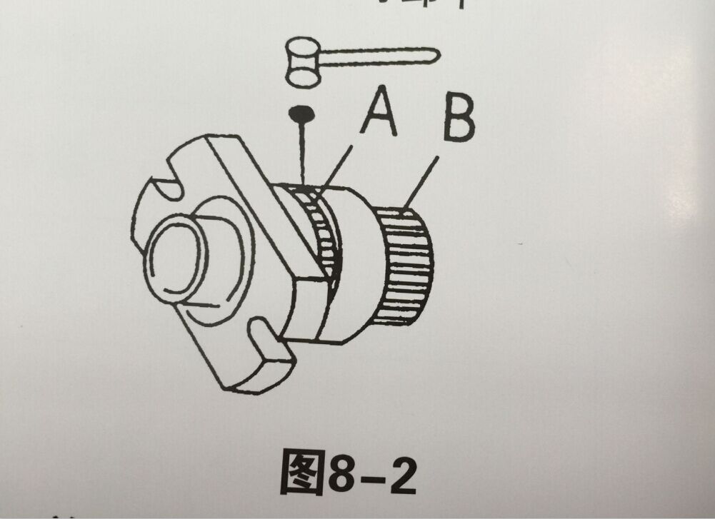 4.用撞擊力如(圖8-1)A、B兩個位置的同一根四方榨條沖出一根如圖8-2,其余則自動散下,若需要更換出餅口可輕擊出餅口凸出邊,出餅口即可卸下。